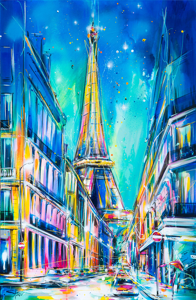 The title of my latest solo exhibition ‘Stardust’, encapsulates both my process of making and the feeling of viewing the final work. Vincent van Gogh once said ‘Go out and paint the stars’ and that quote was the inspiration that has been inside me while painting this entire body of work. I have taken that advice both literally, in my series of starscapes and almost enchantingly, as it feels as though my every brushstroke has been undertaken in a dream-like state. In many ways, this exhibition is an extension of my Wanderlust show, encompassing my passion for painting the places that have left their magic ingrained on my very being. Aside from cityscapes from Brisbane, Paris, London, New York and more, the rest of the show, including the brand-new Tiffany & Co. series, is an enchanting mix of the figurative, still life and fantasy. Stardust is my first exhibition since opening at La Nouvelle Eve in Paris and has been a labour of love. A love borne of the beauty of the night’s sky, the colours, the people and the places that make this world so beautiful to see and interpret through my very own ‘starry-eyes’…