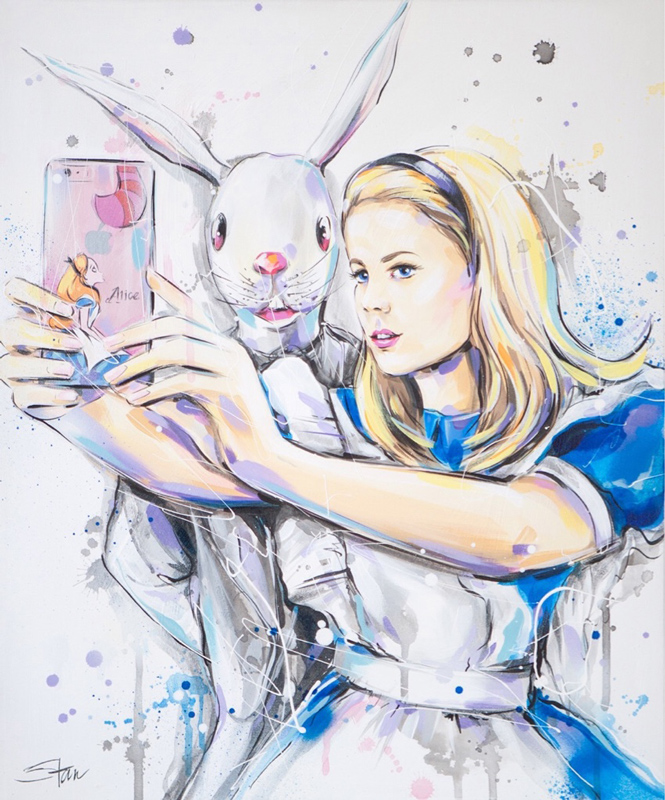 'Alice and White Rabbit Selfie' 60 x 50cm